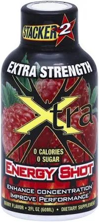 Stacker 2 Energy Shot Extra Strength, Blue Raspberry, 2 Fl Oz